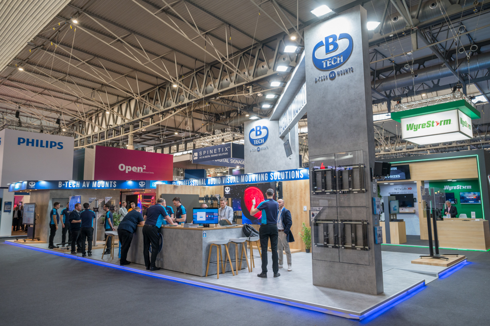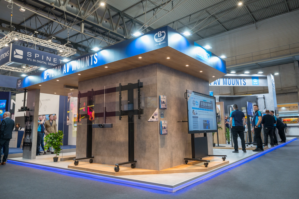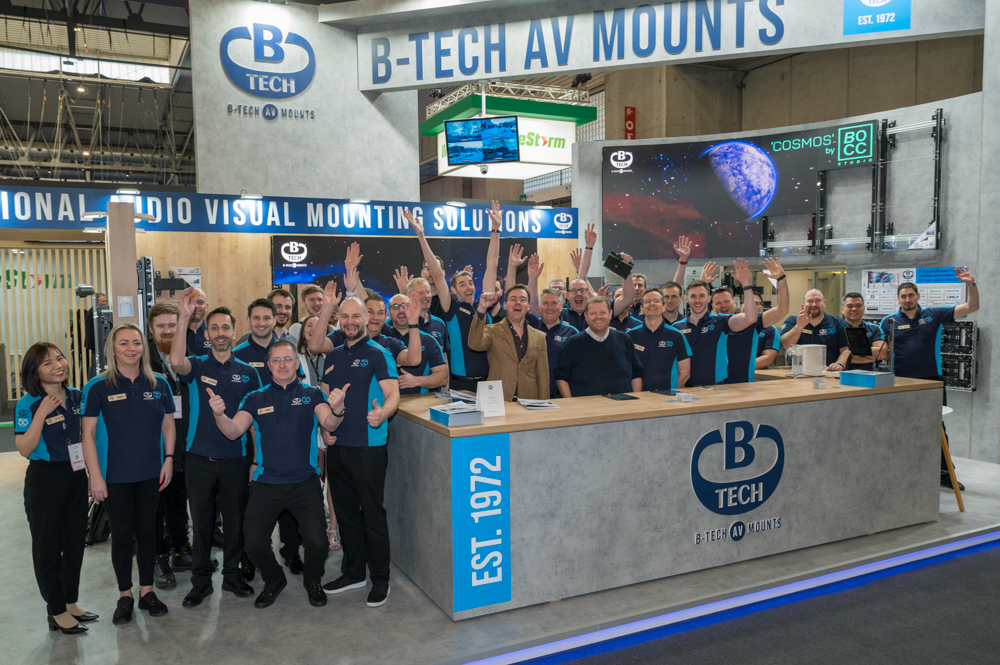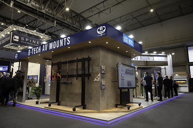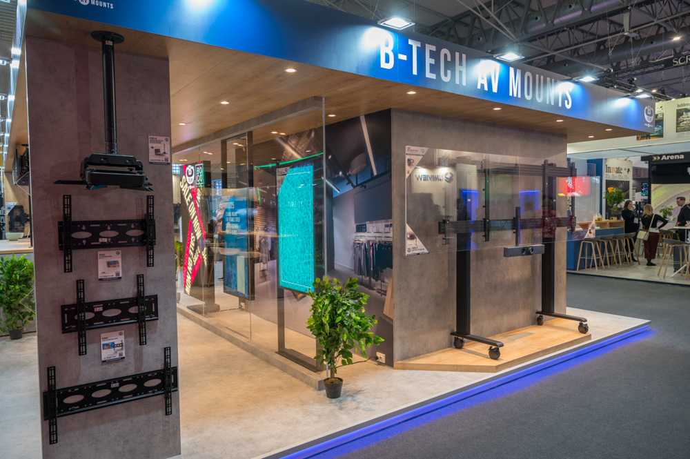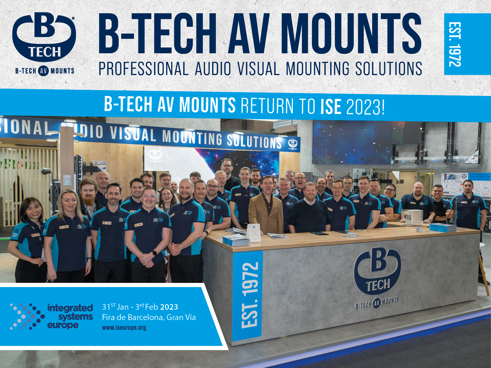 | The start of the year can only mean one thing in the pro AV industry; ISE. This year’s event saw over 58k attendees through the doors of the Fira de Barcelona, and for B-Tech AV Mounts, it was once again a pleasure to be exhibiting, at what was our 17th ISE! With the 2022 show taking place just last summer, it has been an unusually short turnaround between shows, but after months of planning, it was great to be able to invite customers to the B-Tech booth once again, which had undergone some noticeable improvements since last year and featured solutions for the largest variety of technologies that we have ever displayed. The product selection on show contained a mix of staple B-Tech products which have set the industry standards for mounting over the past few years, new solutions launched during the past few months as well as prototype products that we were excited to be able to demo to our booth visitors for the very first time. Some of these are highlighted below, but please view our full gallery of photos and videos at the bottom of this page for a more extensive view of the booth. |