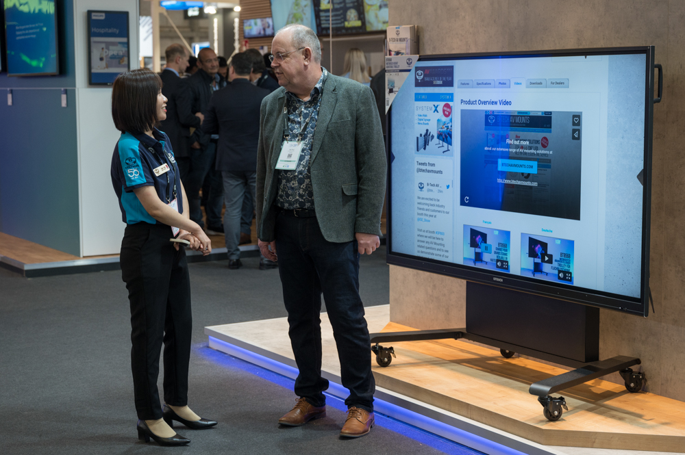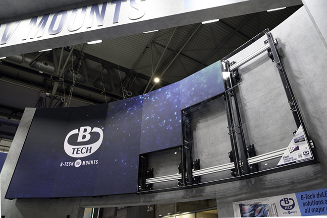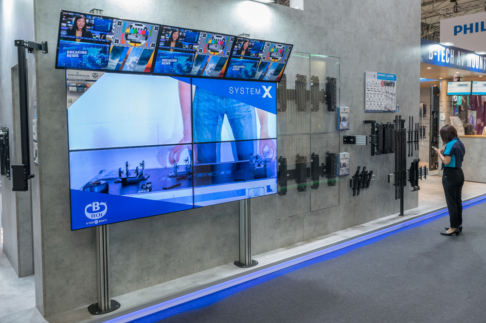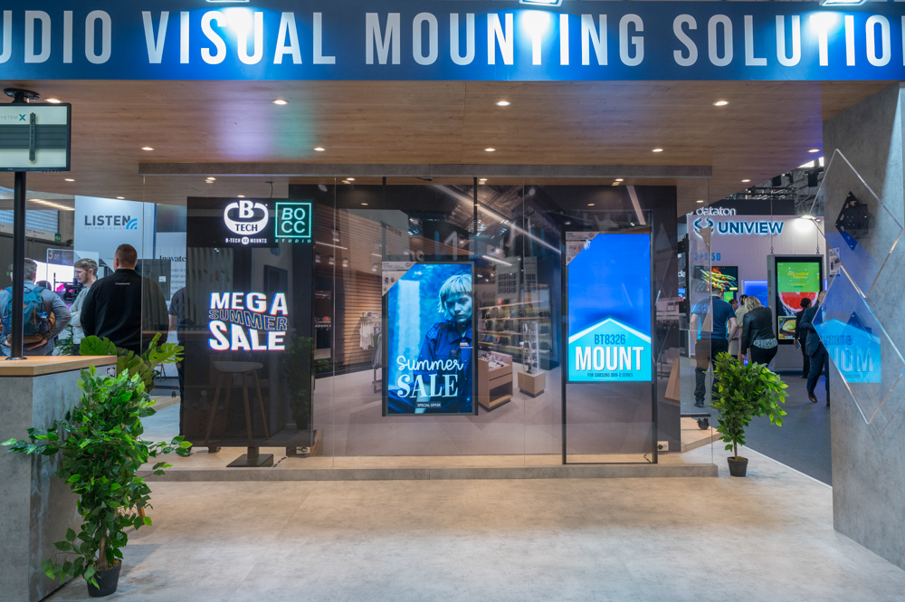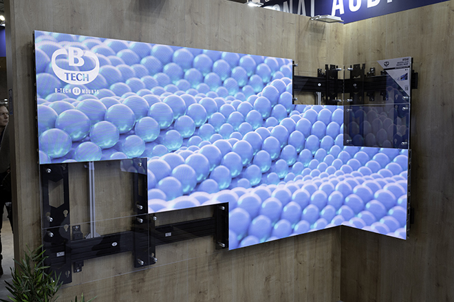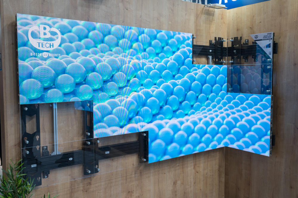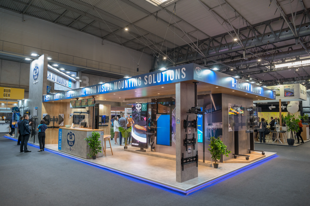 | The start of the year can only mean one thing in the pro AV industry; ISE. This year’s event saw over 58k attendees through the doors of the Fira de Barcelona, and for B-Tech AV Mounts, it was once again a pleasure to be exhibiting, at what was our 17th ISE! With the 2022 show taking place just last summer, it has been an unusually short turnaround between shows, but after months of planning, it was great to be able to invite customers to the B-Tech booth once again, which had undergone some noticeable improvements since last year and featured solutions for the largest variety of technologies that we have ever displayed. The product selection on show contained a mix of staple B-Tech products which have set the industry standards for mounting over the past few years, new solutions launched during the past few months as well as prototype products that we were excited to be able to demo to our booth visitors for the very first time. Some of these are highlighted below, but please view our full gallery of photos and videos at the bottom of this page for a more extensive view of the booth. |