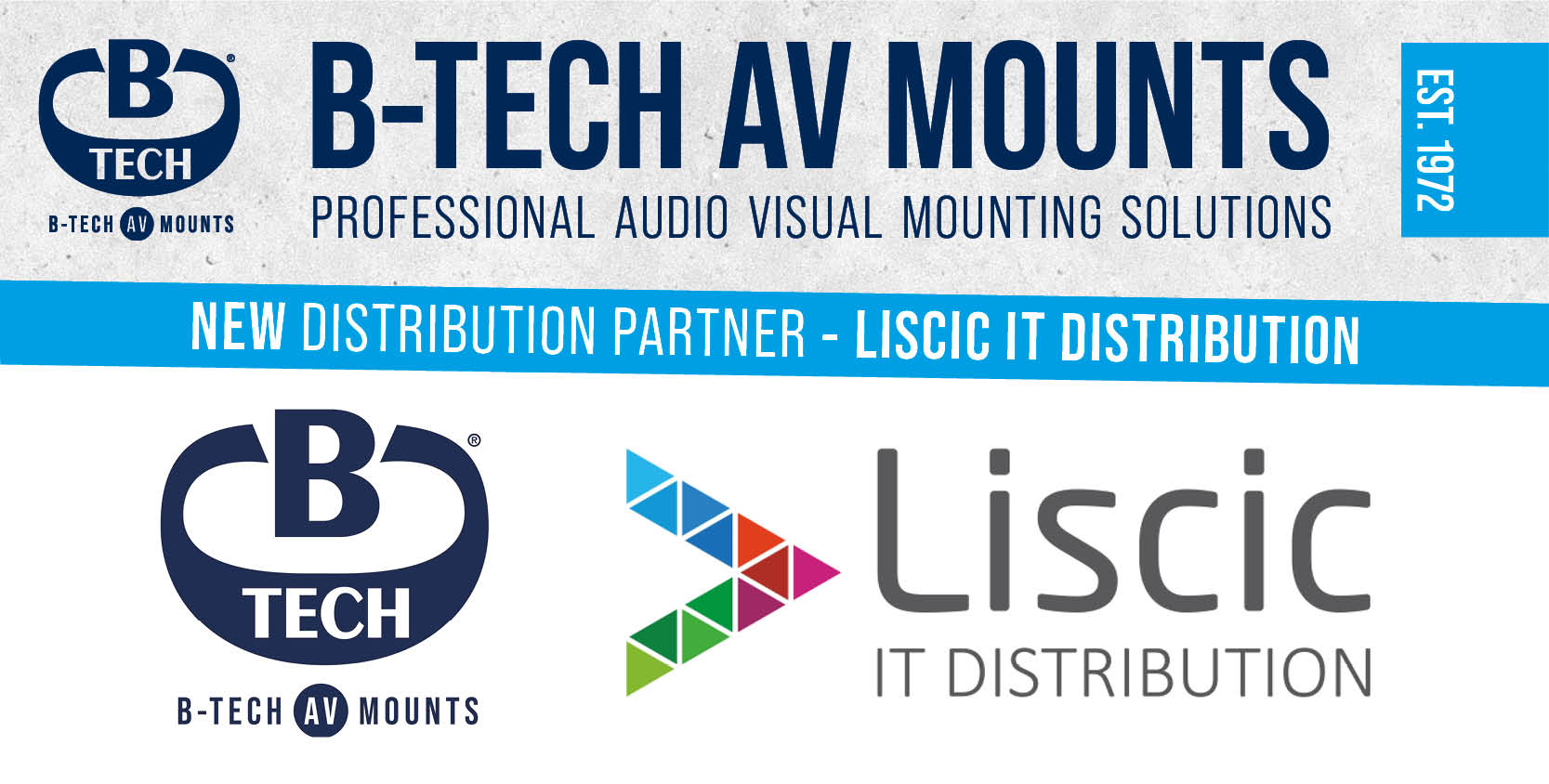 | We are pleased to announce a new distribution partnership with Portuguese technology distributor Liscic. The news follows recent European distribution announcements for France and the Netherlands, highlighting the demand for B-Tech’s award winning mounting solutions across the continent. Established in 1995 as a specialist supplier of Toshiba printer and copier products, Liscic later expanded their product line up with the addition of projectors and in 2009 took another step towards pro AV when they became the distributor for NEC, supplying their range of projectors, monitors and displays. Renowned for their dynamism and for providing support to a vast reseller network, Liscic operate in areas ranging from the reselling of equipment, consumables and parts, to the provision of guarantees and logistics; offering partners commercial and technical training, pre-sales consultancy and marketing support. Liscic will supply B-Tech’s full range of professional mounting solutions, with a particular focus on the System X range for multi-screen installations and System 2 ø50mm pole and collar mounting system; both key ranges to cover hundreds of different installation types - especially useful for video wall and digital signage projects. Executive Director of Liscic, Paulo Trindade comments, “We needed a mount manufacturer to complement our product offering and to provide a wider, more complete portfolio for all of our partners. We recognised B-Tech as the ideal partner; they are renown for the high-quality standard of their products and their knowledge based on so many years in the industry will be a huge asset to Liscic. We feel this agreement will benefit both parties, especially considering the size of our shared network of customers and we are excited to see the progress in this going forwards.” Until now, B-Tech has served the Portuguese market directly, supplying the top 3-4 system integrators from their Iberia office in Barcelona. Now, with support from Liscic, B-Tech products can be supplied to a much wider pool of SIs and resellers. B-Tech AV Mounts’ Sales Manager for Iberia, Enrique Rebollar commented on the agreement, “I am confident the new partnership with Liscic will be extremely positive for both parties and will enable us to grow the B-Tech name in another key European market. With Liscic introducing B-Tech to more system integrators in the country, this strengthens our ability to be involved with AV projects and offer complete solutions to new and future customers.” For more information about B-Tech AV Mounts please visit www.btechavmounts.com and for information about Liscic please visit www.liscic.pt |