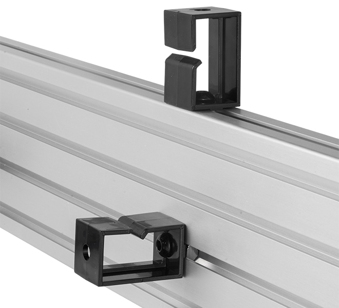 Designed as a reliable and flexible solution to fix cabling discreetly behind System X BT8390 mounting rails. The BT8390-CMC is available in packs of 3 and secured to the rail using an M8 Sliding Nut.