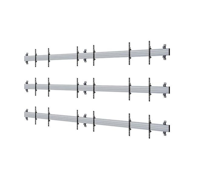 The BT9340-LG-LSAC-3X3 is a wall mounting solution designed specifically to mount LG LSAC Series 54" dvLED panels in a 3x3 videowall configuration. A high-end aesthetic, anodised aluminium finish and integrated cable management ensures a smart & stylish installation which is quick & simple to install.