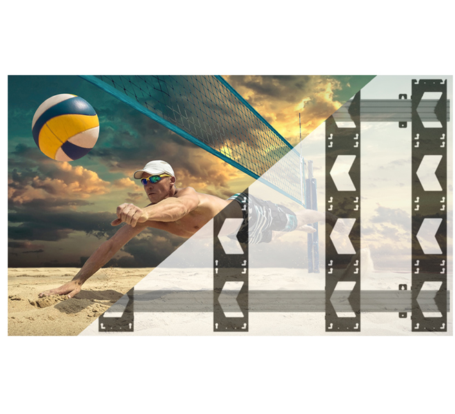 | | The BT93UNIUPS-W-4X4 is a wall mounting solution designed specifically to mount Unilumin UpanelS Series dvLED panels in a 4x4 videowall configuration. Interface arms are a 4-row high, single piece construction featuring height adjustment and keyhole mounting points for a quick, simple and precise installation of dvLED panels, without needing to measure and set the location of each cabinet. |