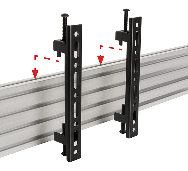 | BT8390 Horizontal Mounting RailThe central component of any System X installation. | BT8390-VESA400F System X™ Universal Interface ArmsDesigned for medium / large screens with VESA® and non-VESA fixings up to 400mm (15.7") |