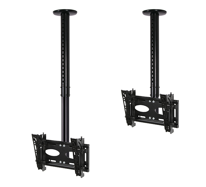 | | Designed to ceiling mount screens up to 50kg, the BT8423 features an adjustable drop of 625mm - 950mm in increments of 25mm. The mount uses B-Tech's unique 'Torsion-Tilt' mechanism for easy tilt up to +/-15°. Levelling screws are included on the interface arms to finely adjust the screen height and locking screws help prevent unauthorised removal of the screen. Cover plates are supplied for a neat and tidy installation. |