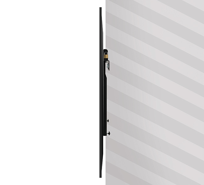 | | Designed for medium sized screens up to 35kg, the slim BT8421 mounts screens just 30mm from the wall and features post installation screen alignment, B-Tech's "On Wall Levelling System" and simple 'hook-on' installation to make screen mounting as quick and simple as possible. The BT8421 also features a security locking bar to help prevent un-authorised removal of the screen. All mounting hardware included. | |