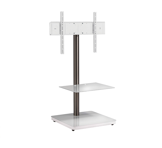| | Part of B-Tech's Cantabria range of premium AV furniture, the BTF800 has a modern, stylish aesthetic quality that is ideally suited to high-end residential or commercial applications. Manufactured in Europe, this flat screen TV stand is produced to a very high standard, with a sleek design that features a high gloss finish and a tempered glass shelf. The stainless steel upright includes integrated cable management and rotates up 60° while the square base benefits from concealed castors. | |