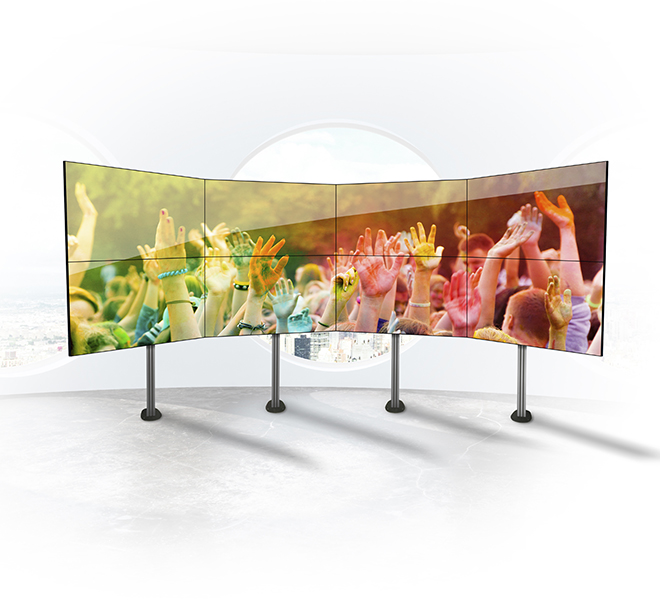 | BT8372 Universal Bolt-Down Videowall StandDesigned for screens up to 75" (190cm) / 50kg (110lbs) (per screen) | BT8373 Universal Curved Videowall StandDesigned to create curved videowalls |