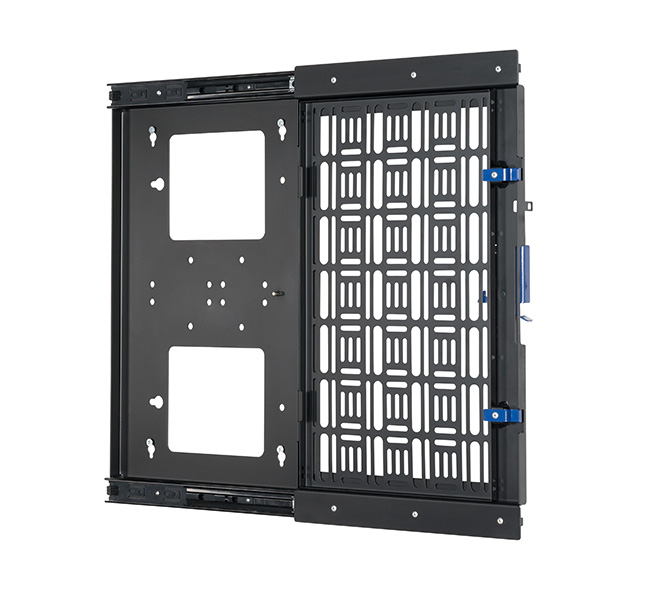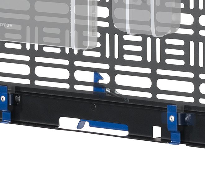 | BT7884 Flip-Down AV Storage TraySuitable for storing AV equipment on any solution that uses BT8390 Mounting Rails. | BT7889 Wall Mounted Fixed AV Storage TrayDesigned for storing AV equipment behind a screen. |