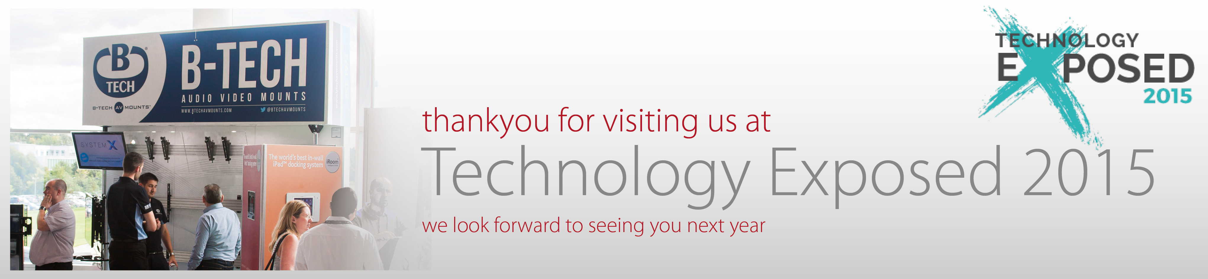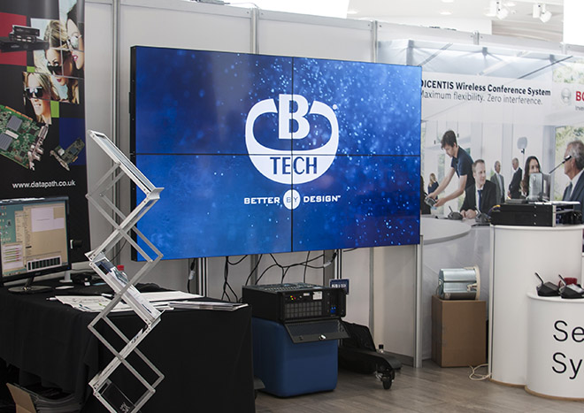 B-Tech in abundance at Midwich Technology Exposed event B-Tech enjoyed a fantastic Technology Exposed event this week at Mercedes-Benz World, showcasing new ranges and software designed to benefit installers and integrators. Technology Exposed, staged by leading AV distributors Midwich, is a key annual gathering of all the great and the good in the industry, with over 40 leading brands showcasing the latest innovations in audio and visual technology. The star of the show on the B-Tech stand was the new System X range, along with a selection from our newest additions to the high-end Cantabria floor stand range and desk mount solutions. Also being demonstrated for the first time was B-Tech’s new System X configuration tool. Launching at the start of October along with the System X range, this online tool allows for quick and easy specification of mounts for almost any permutation of video wall.  Throughout the cutting-edge Mercedes-Benz complex, B-Tech solutions were also being utilised by numerous other leading AV innovators such as ATEN, AMX, Datapath, TVOne, along with hosts Midwich themselves. ATEN featured B-Tech’s BT8352 Freestanding Curved Video Wall Mount to support a stunning 3x3 curved video wall, showcasing the power of their VM1600 seamless switcher. TVOne and Datapath both featured System X solutions to mount their freestanding video wall displays, with TVOne utilising the BT8371 to display a 4-screen mosaic video wall. In addition to these a large number of other B-Tech trolleys and video wall stands could be found throughout the event, highlighting the import role B-Tech products played to a number of exhibitor displays. Mark Walker, business development manager at B-Tech, said: “This is the eighth Technology Exposed event hosted by Midwich, and it gets better every year.” He added: “It’s a great opportunity for us to showcase our latest products to the industry and the response to our new System X range has been fantastic. The Midwich Technology Exposed event is always a highlight on the B-Tech calendar and this year was no exception." “On behalf of everyone at B-Tech, I’d like to thank Midwich for putting on another excellent event. Brilliantly organised, at a stunning venue, Technology Exposed makes us proud of our Midwich partnership and we look forward to returning next year.” |