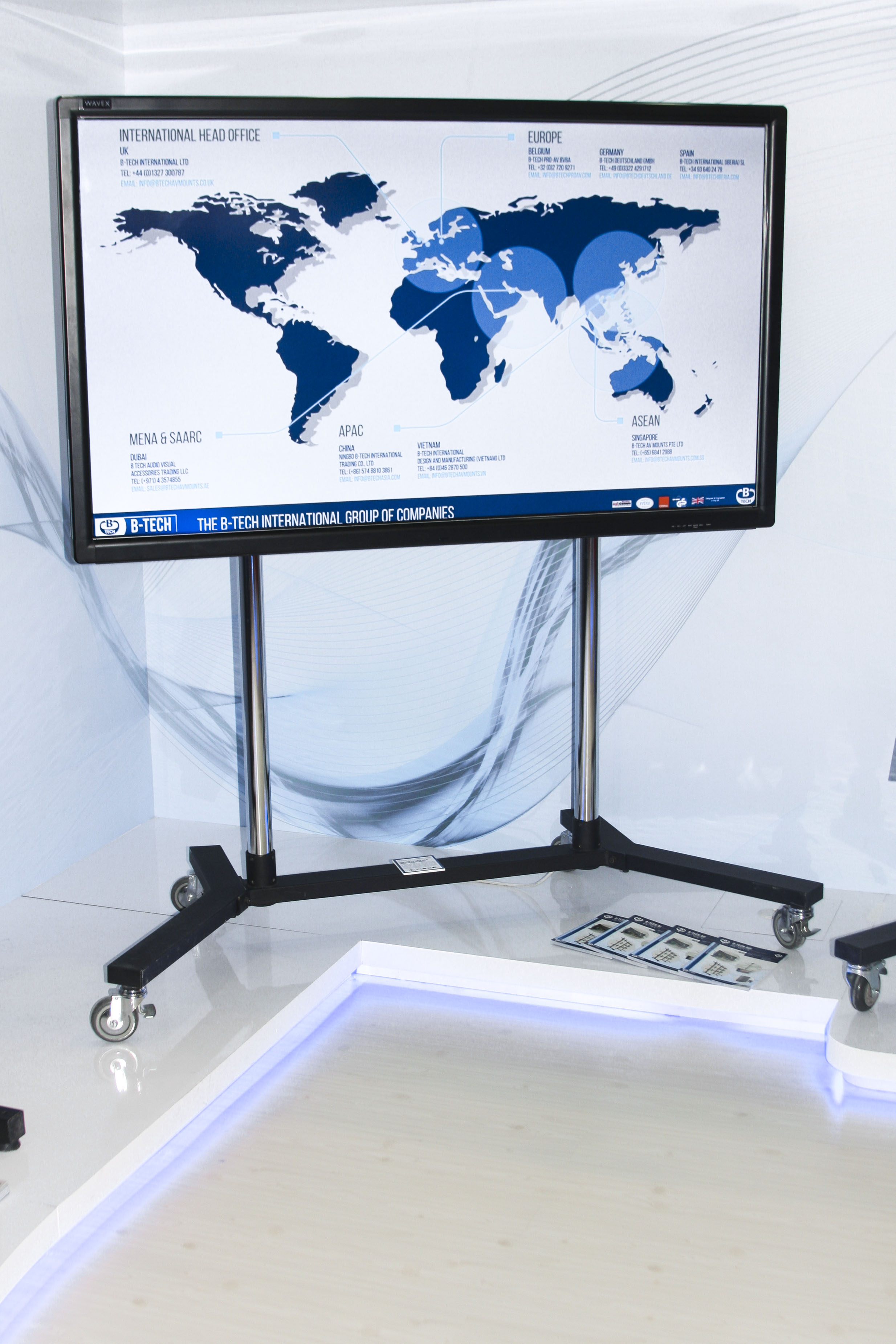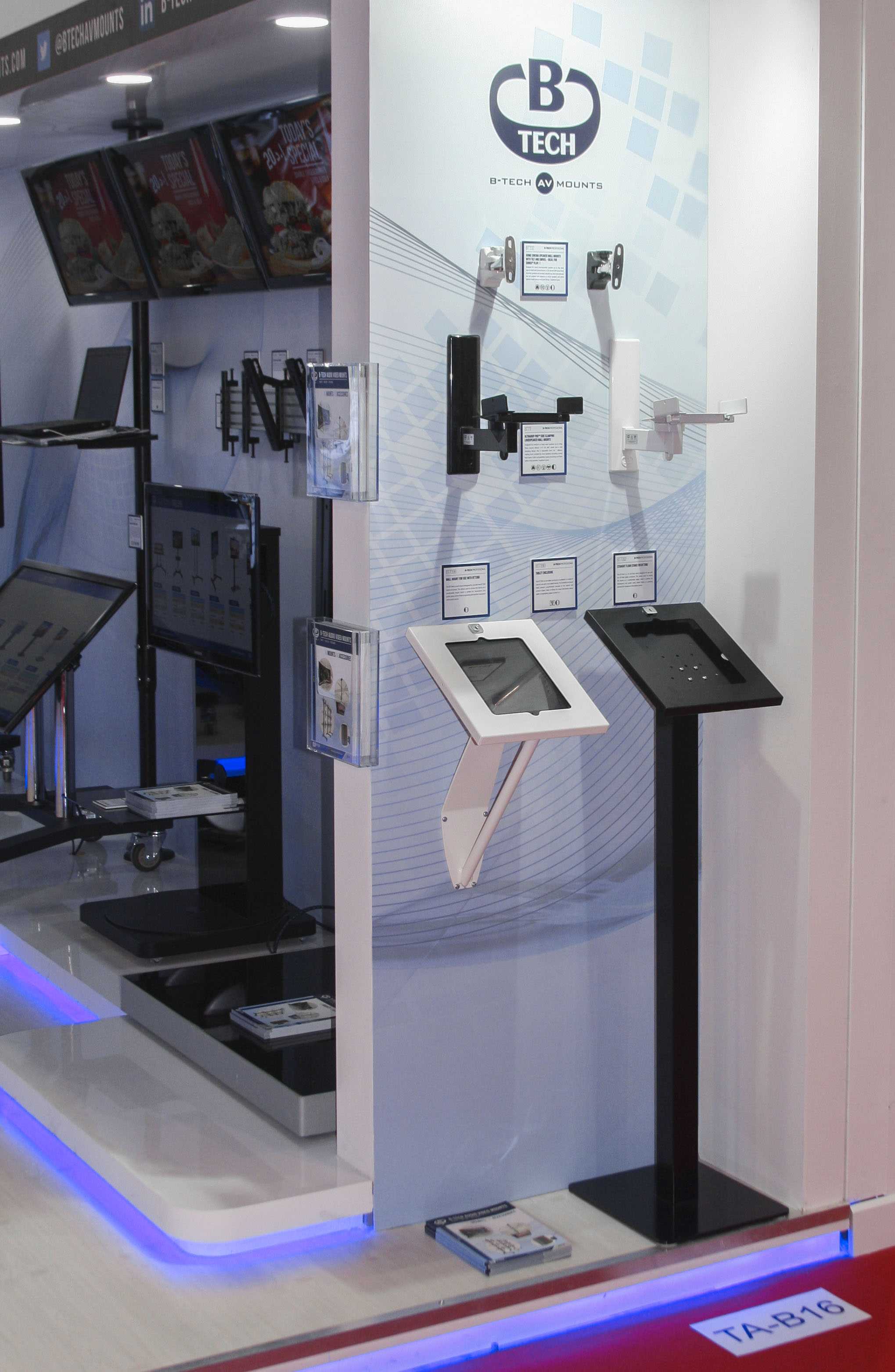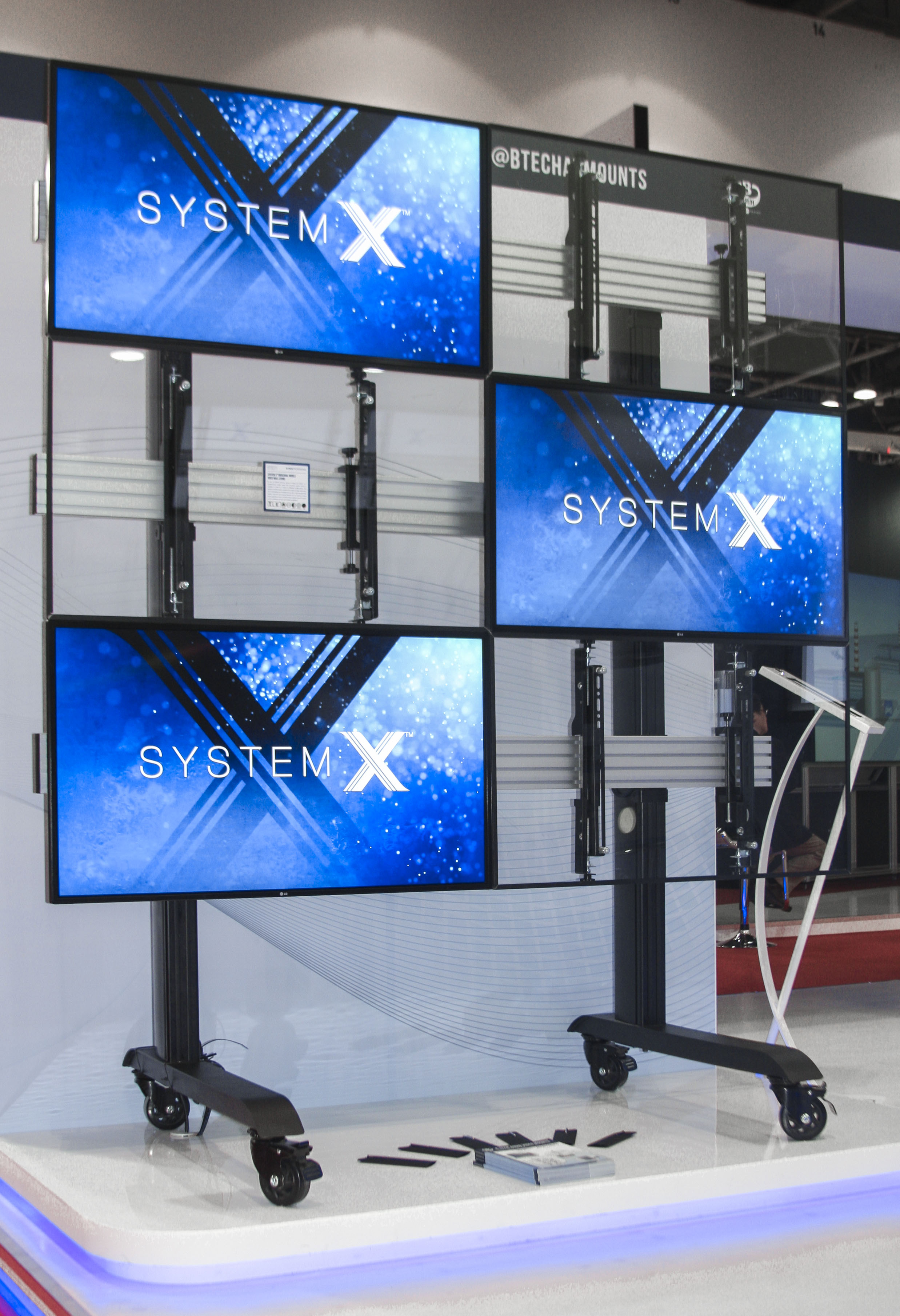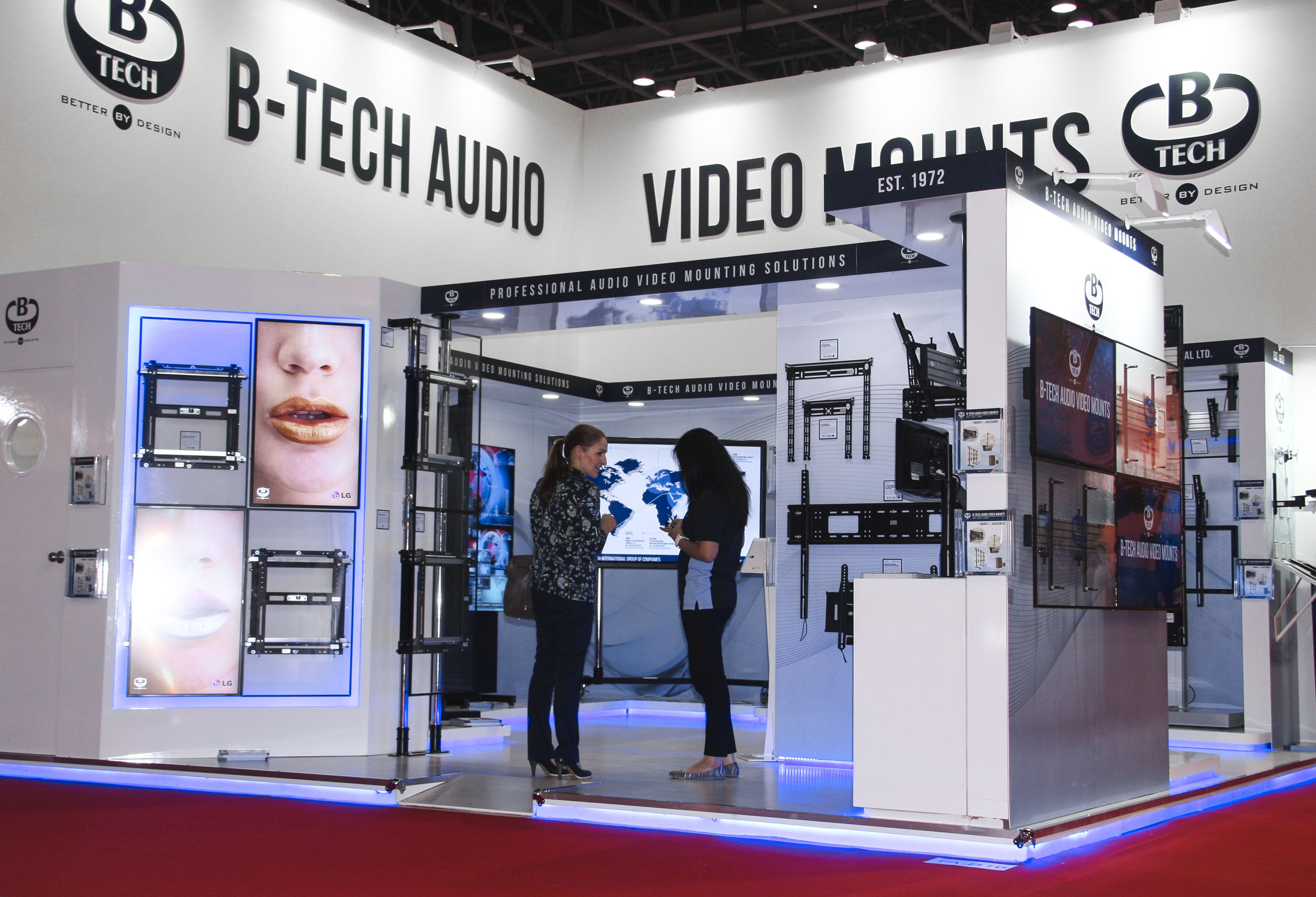 System X shines at InfoComm Middle East event The Middle East is the latest part of the world to host ‘System X on Tour’ as B-Tech showcased their impressive new range of video wall, menu board and digital signage mounts at a successful InfoComm MEA show. The four-day event in October, staged at the World Trade Centre in Dubai, is run as part of the GITEX technology week, making for one of the largest annual gatherings for the tech industry in the region. Giving System X maximum exposure, B-Tech invested in a high-end, eye-catching stand, which brought interest not only from the Middle East market, but also generated solid leads from Europe and the rest of the world. The show also marked the first anniversary of B-Tech’s Middle East subsidiary, where their reputation for quality and British engineering continues to thrive in a region that is demonstrating impressive growth.  Jon Alway, export sales manager for B-Tech, said: “The investment in our stand was certainly fitting for a product such as System X. We were able to display how the range can be used across a wide range of applications, covering numerous markets, and we were delighted to generate quality leads from the exhibition that we look forward to following up.” He added: “Over the past 12 months, we have seen B-Tech go from strength to strength in the Middle East and, with our local service, regionalised warehousing and showroom in Oud Metha, Dubai, we expect System X to be a popular part of the growing number of installations in the region.” The digital signage market is probably growing faster in the Middle East than anywhere else in the world and B-Tech are perfectly placed to meet this demand with their System X range. With a range that is available in over 2,000 configurations, System X can be utilised for applications ranging from a single screen to almost unlimited displays. To discover more on B-Tech’s offering to the MEA and SAARC region, please contact us using the details below: Joie Rull on: +971 4 3574855 / sales@btechavmounts.ae Qazi Hassan Ataullah on: +971 4 3574855 / q.ataullah@btechavmounts.ae  |