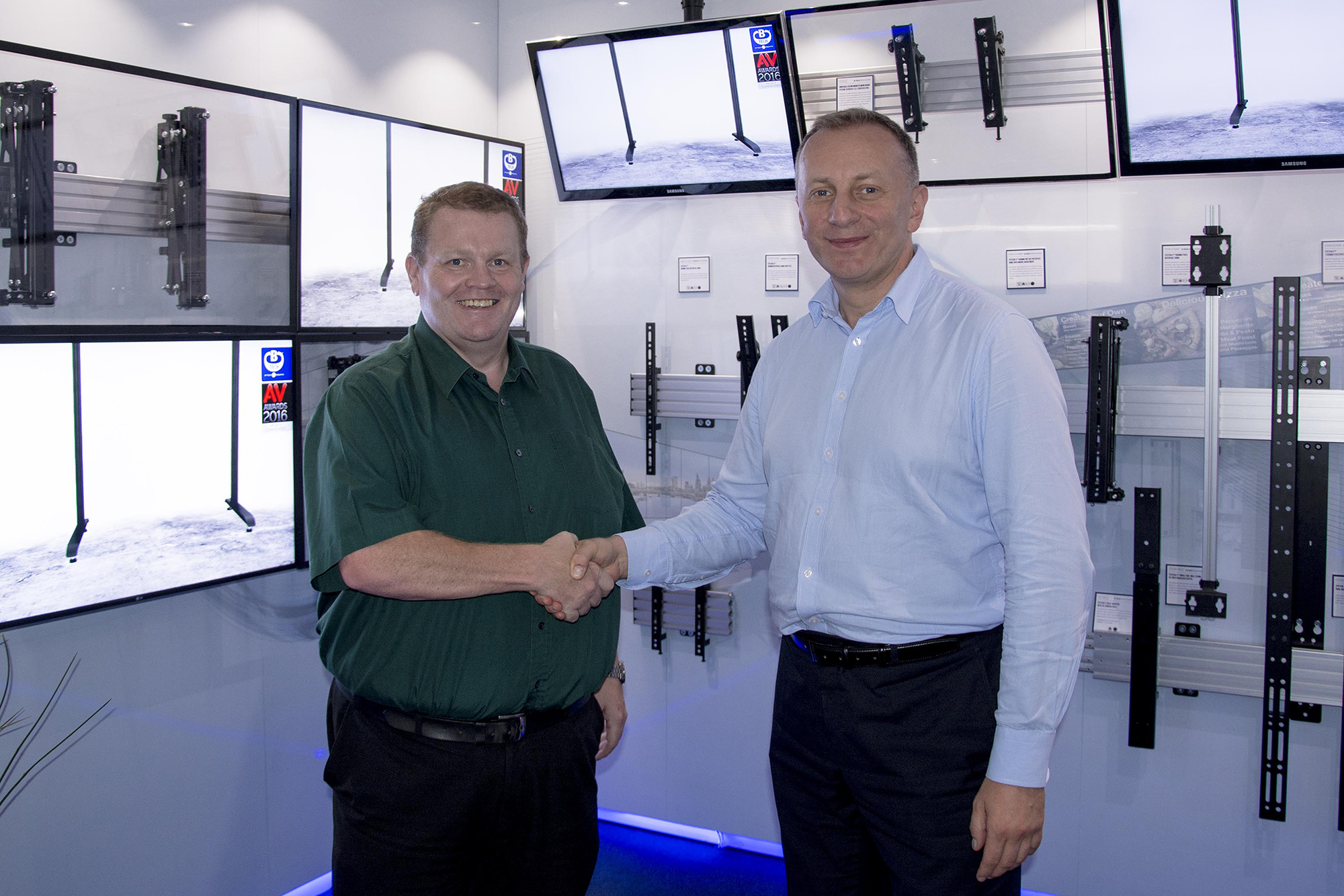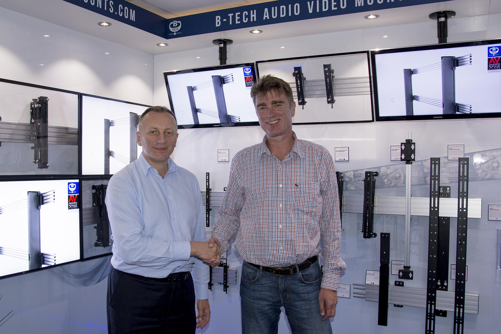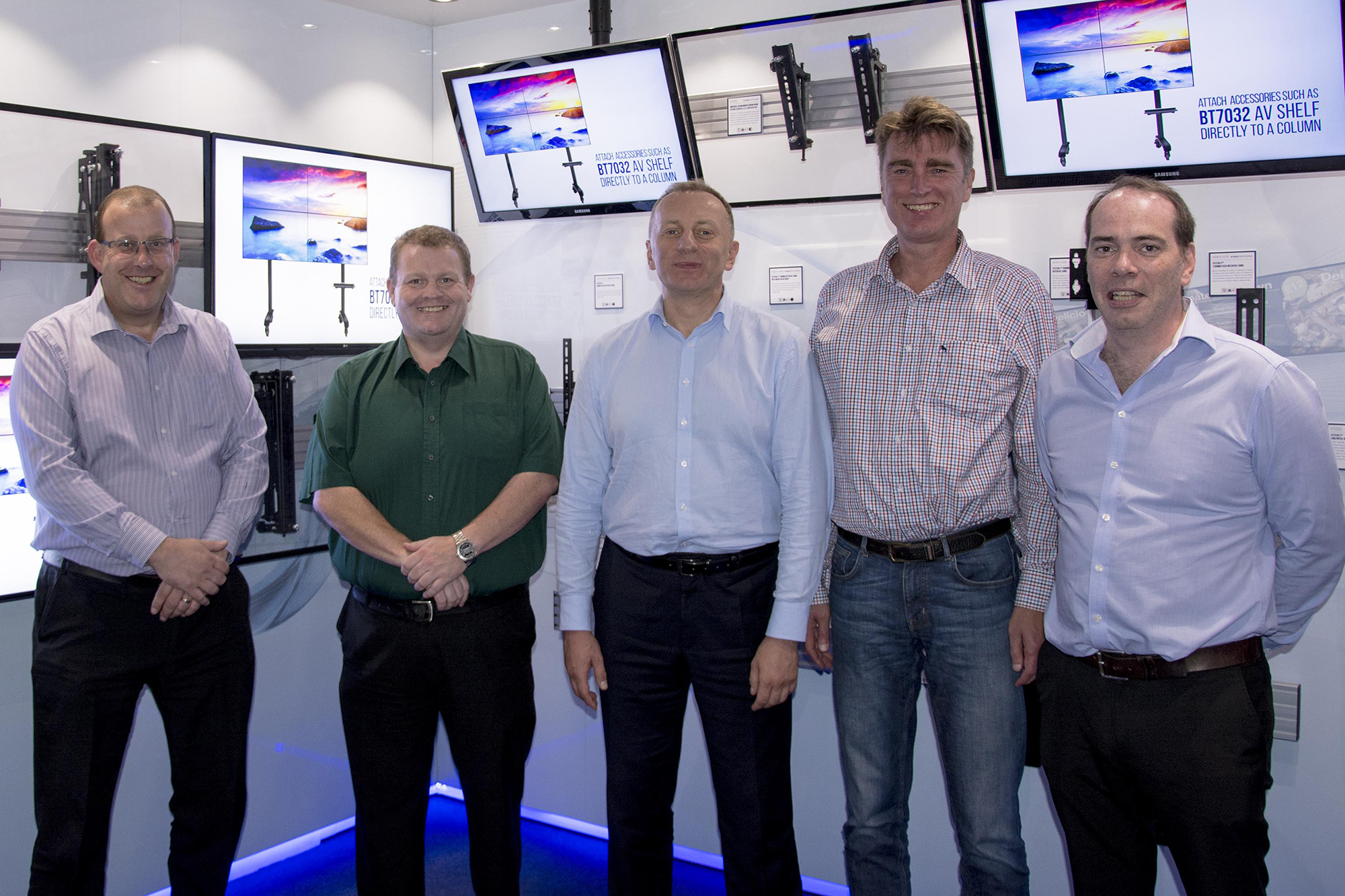 | B-Tech’s growing European team got together for two days of training and forward planning at our UK headquarters. Thomas Barz, managing director of B-Tech Deutschland, and Przemyslaw Mika, sales manager for the CEE region, joined International sales managers Jon Alway and Paul Haggarty for a meeting at the Northamptonshire headquarters with B-Tech Group BDM Mark Walker and MD Matthew Bennett. Hot topics on the meeting agenda included exploration of further expansion opportunities throughout the continent and product training on B-Tech’s latest releases, including the recently launched BTF range of freestanding floor stands and new slimline BT8312 pop-out video wall mount. The head office visit also gave newly appointed Prem the opportunity to see UK operations first hand and to meet all of the team.