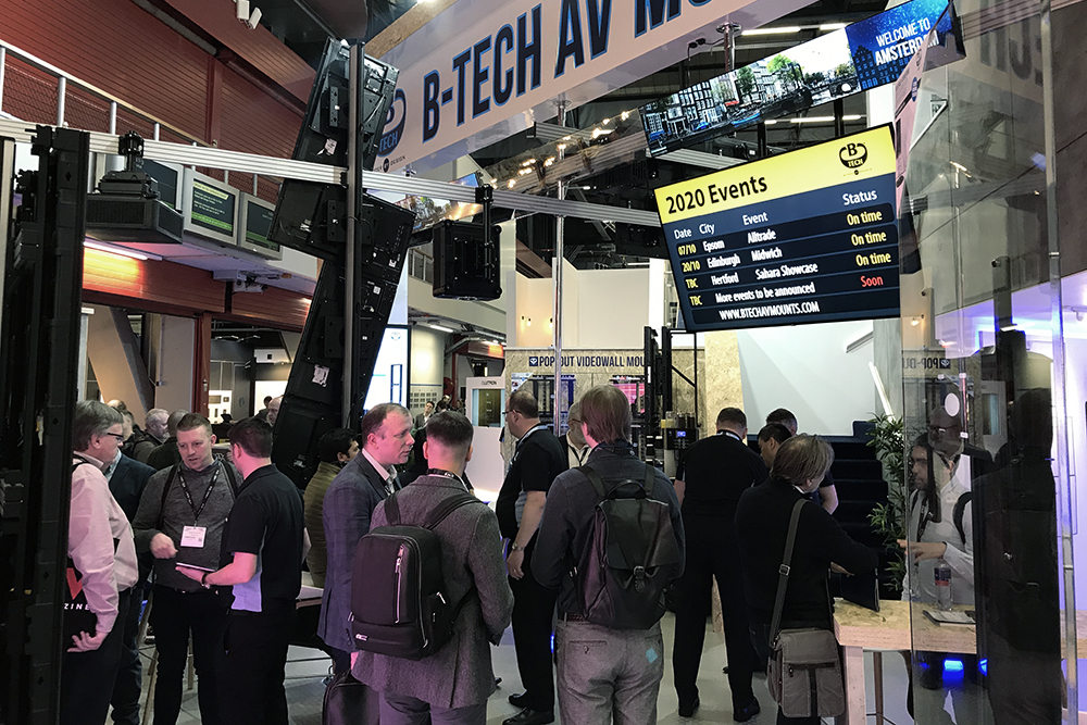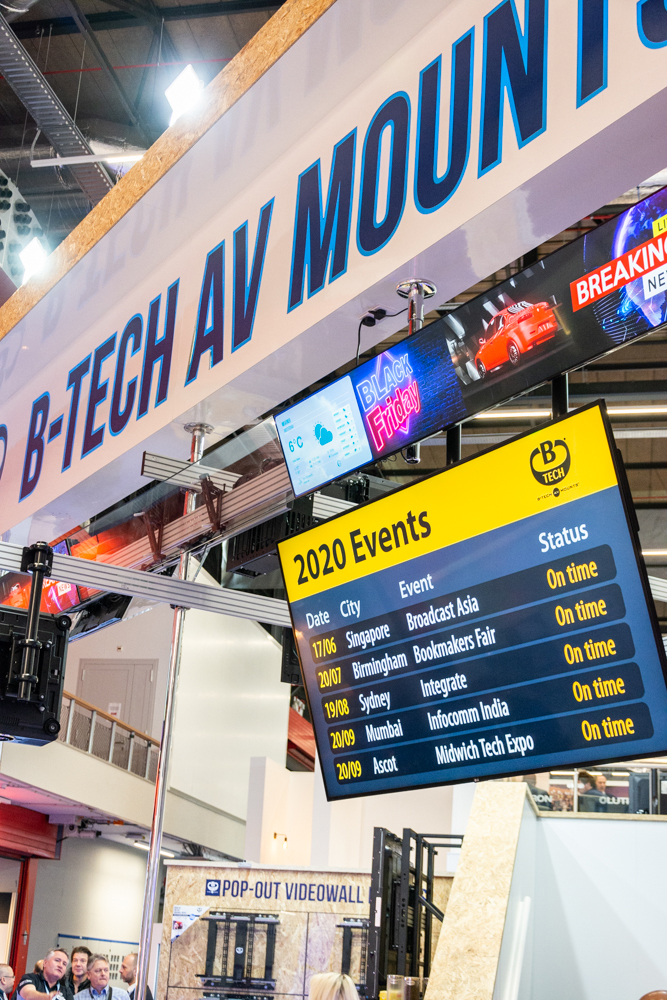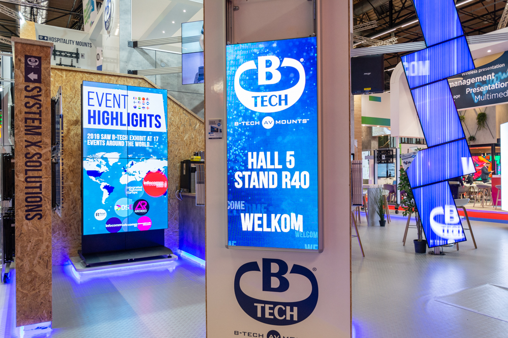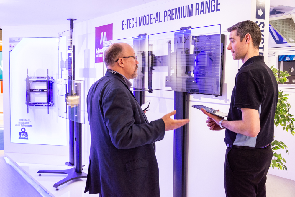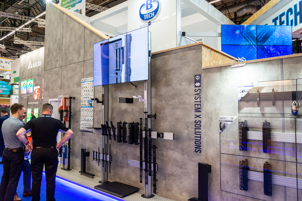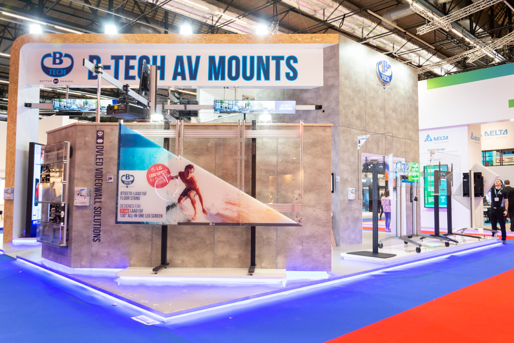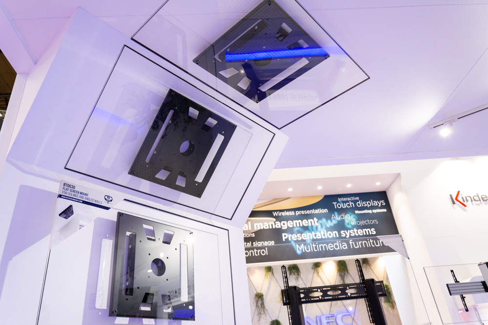 Best of the rest Of course, ISE is not just about what’s new, with the show providing the perfect opportunity to showcase the length and breadth of our portfolio, with a wide selection of our latest and greatest on display. In addition to Mode-AL and our new Designer Trolley range, we demonstrated how our LED mounting system is compatible with all Direct View LED, with some examples of how simple it is to mount panels from some of the leading brands. One of the standouts was our hugely popular BT9370-LAA015F, a freestanding solution designed specifically for LG's LAA015F 130" All-in-One LED Screen. A collection of our most important and sought after products released over recent months and years were also on show and hugely popular among visitors, including our BT7007 display kiosk for LG’s 88BH7D digital signage screen, the BT7550 Rotational Flip Mount, our BT893 Heady-Duty Projector mount and our recently updated Micro-Adjustment and Pop-Out System X Interface arms.