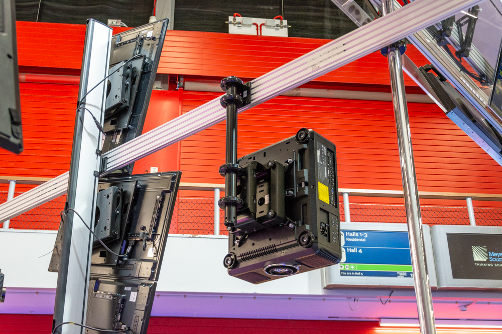 In addition to ‘bread and butter’ applications such as common videowall or menu board configurations, System X can be used to span huge distances in order to mount product in places where it usually would not be possible - for example to hang XL screens and projectors or ultra-stretch displays overhead.