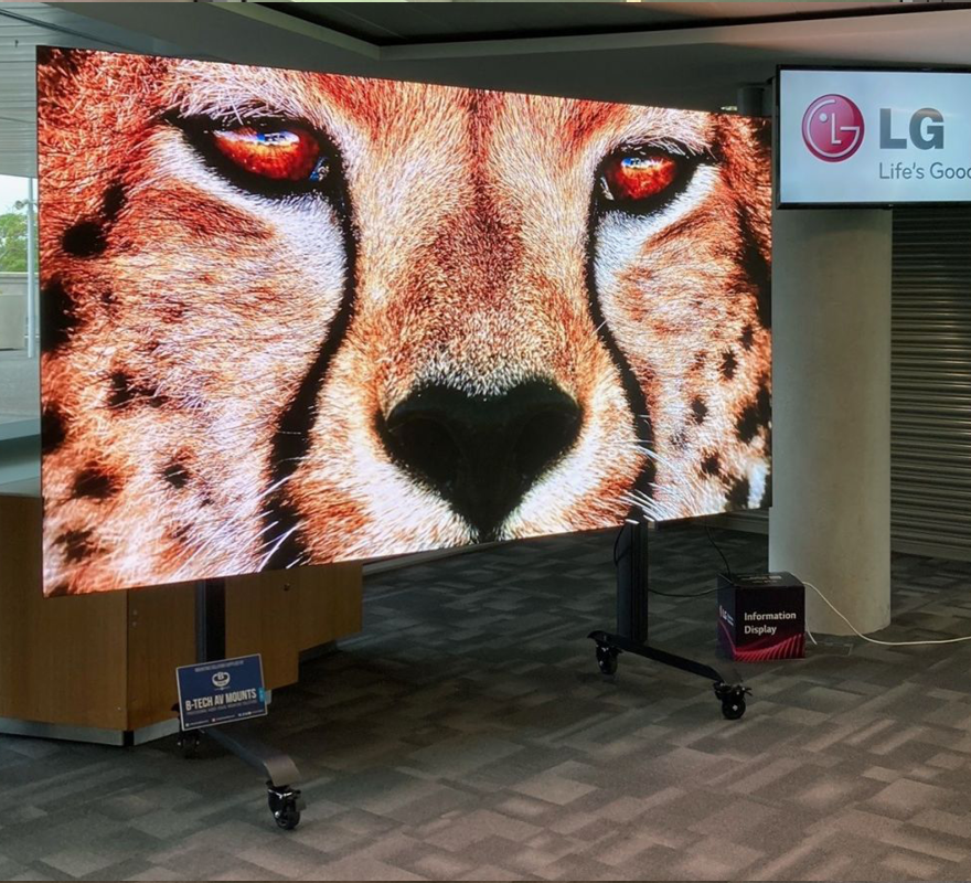 | As LG's chosen mounting partner, B-Tech was pleased to be able to display a range of Flat Screen and dvLED solutions at this impressive event. Among the products on show were our BT7885 and BT7883 Flat Screen Wall Mounts with Pull-down and Slide-out AV Storage Trays as well as examples of LG-specific dvLED mounts such as the BTLAEC015-M designed for the huge LGLAA015F 130" screen. | |
