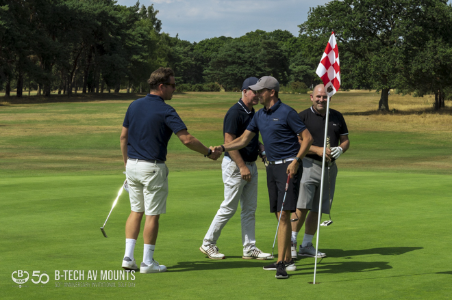 After a two-year hiatus, B-Tech’s Invitational Golf Day returned for a special 50th anniversary edition of the event. On the 29th of July, B-Tech were thrilled to welcome golfing representatives from our industry partners and customers to our 6th annual Invitational Golf day, held for the first time at the famous Frilford Heath Golf Club. Set amongst 500 acres of heathland to the southwest of Oxford city, the course was designed by Open Champion J.H. Taylor in 1908 and this year will host The English Trophy when the European Challenge Tour returns to British soil in September. Our biggest and busiest event to date, the day was not only a wonderful way to celebrate 50 years of business but was also our way of thanking our incredible customers and partners. It was also nice to be able to use the day to raise money for the British Heart Foundation. After early morning refreshments and some putting practice, all teams teed off simultaneously under a shotgun start at 10:30 for 18 holes of friendly competition. Completing the golf at 3.00pm, players retired to the historic clubhouse for a well-earned beverage, and a superb BBQ.    The late afternoon saw a short and informative talk by UK Director of Operations, Mark Walker, followed by the presentation of the day’s awards by B-Tech Key Account Manager, Matt Nixon, who also acted as event organiser for the day and commented: “It was a real pleasure to host the 50th Anniversary B-Tech Golf Day at Frilford Heath. With the sun shining down on the spectacular heathland course, 18 teams enjoyed a fabulous day of golf. My special thanks go to all the Frilford Heath staff who made the day run like clockwork. The aim of the day is to reward our partners with a nice, chilled day off in a relaxed environment. I’m very proud of the whole B-Tech team for making the day exactly that. Lastly, it’s amazing to see how much the B-Tech golf day has grown since we introduced it back in 2014 and I’m hugely thankful to those who attended to celebrate our 50th anniversary and who continue to support B-Tech AV Mounts. The reach of B-Tech and our loyal customer base never fails to amaze me and I’m very much looking forward to arranging the next one.” Roll of honours: