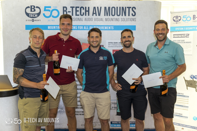 50ft Anniversary Putt: Darren Banks – Absen Longest Drives: Gerry Goss & Paul Tippins – Samsung Nearest the Pin: Neil Dorrian – Evoke Creative Winning Team: Lee Harris (Midwich) / Tom Hunt (Midwich) / Scott Bumphrey (Midwich) / Chris Gore (Spor AV) Individual 3rd Place: Stuart Holmes (PsCO) Individual 2nd Place: Tom Hunt (Midwich) Individual 1st Place: John Allen (SCS Hospitality Partner) Biggest Bandit: John Allen (SCS Hospitality Partner) |