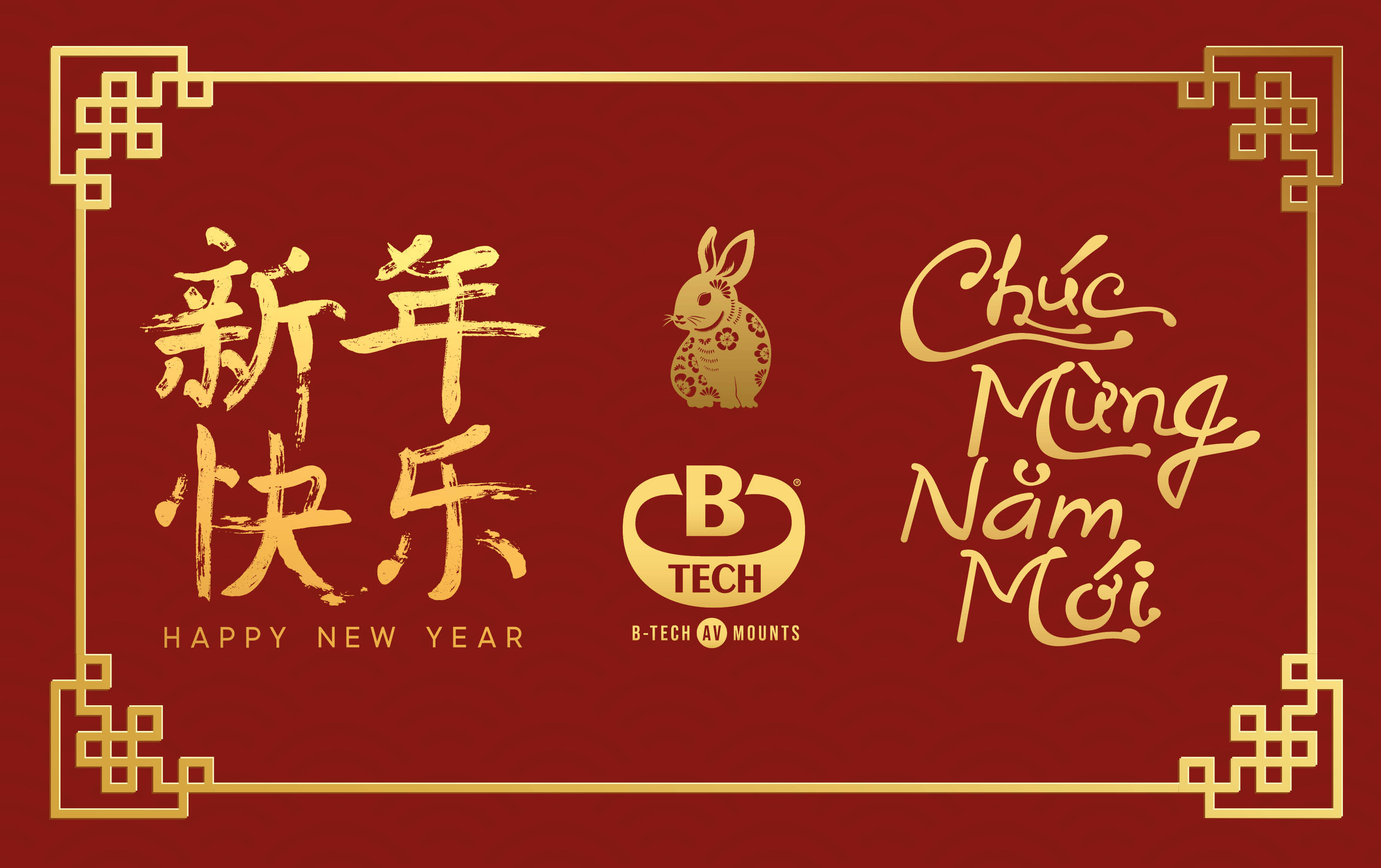 We wish a Happy Lunar New Year to all of our loyal customers. Thank you for your valued custom, we look forward to working with you again in the new year. Please note our office opening hours over this period are as follows: B-Tech International Vietnam Company Limited - Vietnam January 20th Afternoon - January 29th - Closed January 30th - Open as usual Ningbo B-Tech International Trading Co., Ltd - China January 20th Afternoon - January 29th - Closed January 30th - Open as usual B-Tech AV Mounts Pte Ltd - Singapore January 23rd - January 24th - Closed January 25th - Open as usual B-Tech Korea Co., Ltd
