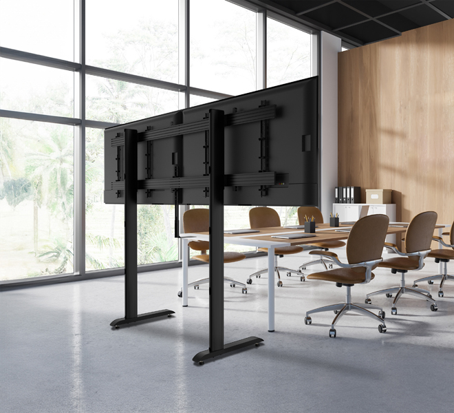 | BT8538 XXL Twin Screen VC Bolt-Down StandBolt down solution for twin screens up to 86" (220cm) | BT8518 XXL Twin Screen VC TrolleyMobile solution for twin screens up to 86" (220cm) |