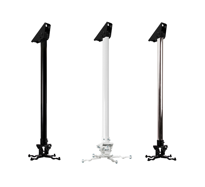 | | The BT899XL-FD is a fixed drop ceiling mount which has been designed to mount universal projectors up to 25kg. Available in a choice of 5 pole lengths from just 0.5m up to 3m, this fixed drop mount features an adjustable ceiling plate ideal for mounting to angled ceilings. The BT899XL-FD is designed with easy adjustment of tilt, roll and swivel, with optional micro-adjustment for short throw projectors. |