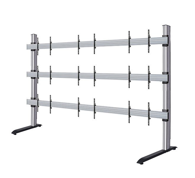 The BT9370-LG-LSAC-3X3 is a freestanding mounting solution designed specifically to mount LG LSAC Series 54" dvLED panels in a 3x3 videowall configuration. A high-end aesthetic, anodised aluminium finish and integrated cable management ensures a smart and stylish installation which is quick and simple to install.