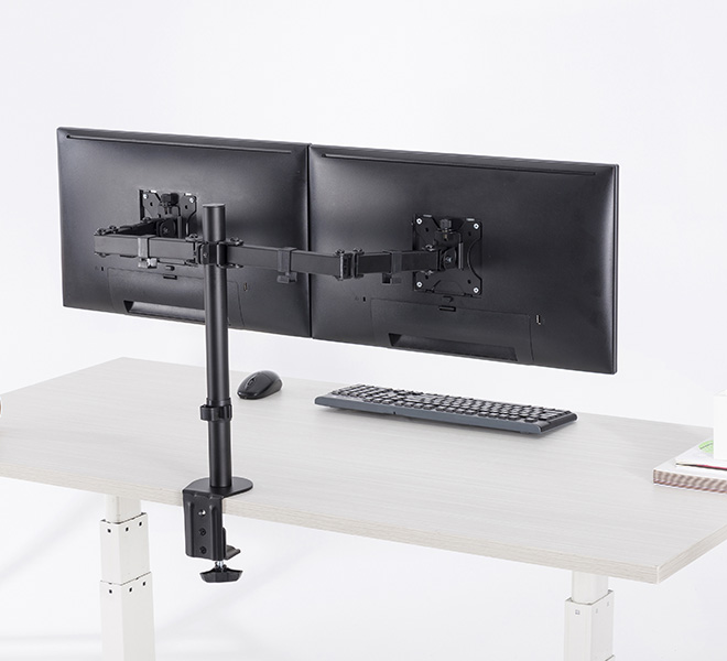 | DS70-450BL1 Full Motion Desk MountFor screens up to 42" | DS75-450BL2 Full Motion Dual Desk MountFor screens up to 32" |