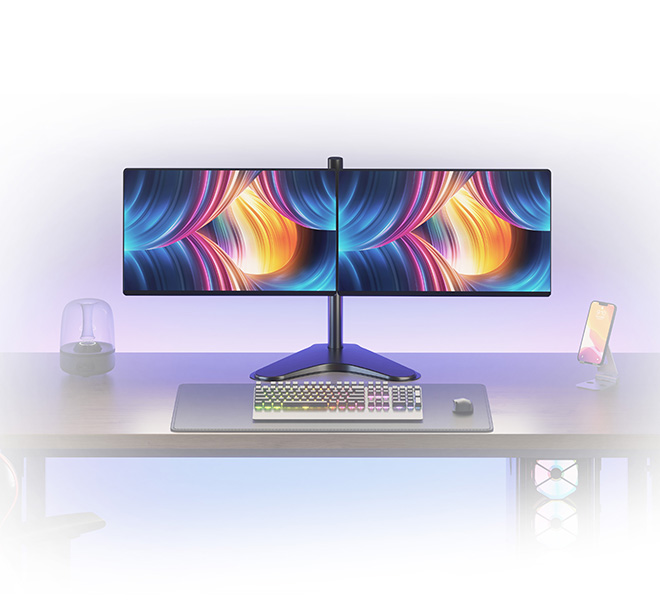 | DS70-450BL1 Full Motion Desk MountFor screens up to 42" | DS75-450BL2 Full Motion Dual Desk MountFor screens up to 32" |