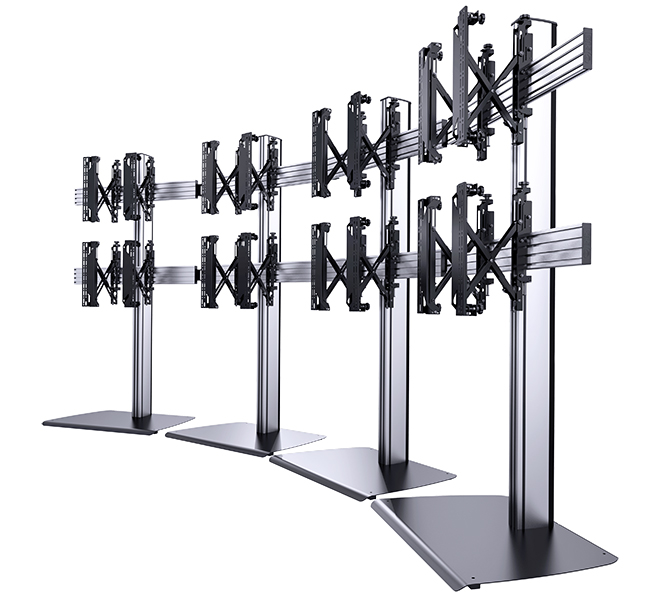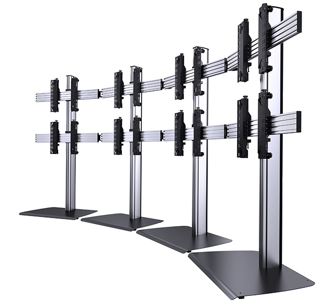 | BT8374 Universal Mobile Curved Videowall StandDesigned to create curved videowalls | BT8370 Universal Videowall StandDesigned for screens up to 75" (190cm) / 50kg (110lbs) (per screen) |
