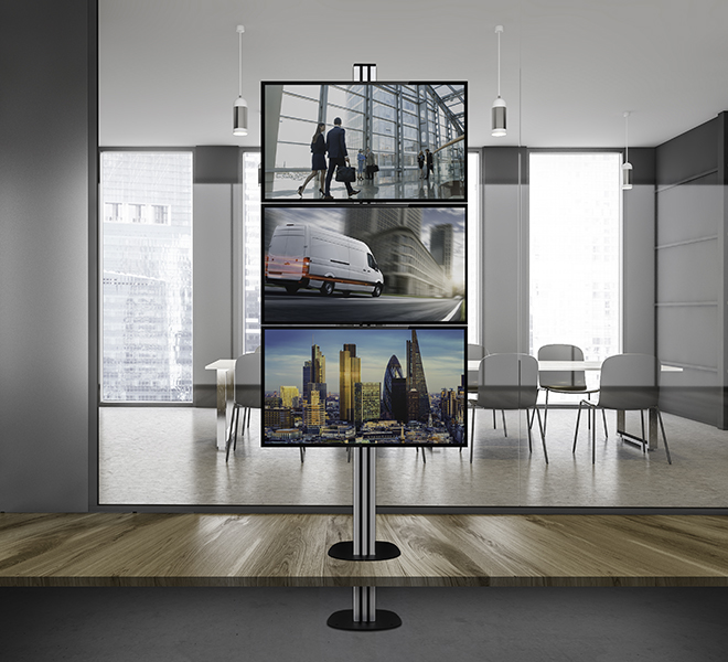 | BT8380-FFB Bolt Down Floor BaseDesigned to securely fix System X installations to the floor | BT8372 Universal Bolt-Down Videowall StandDesigned for screens up to 75" (190cm) / 50kg (110lbs) (per screen) |