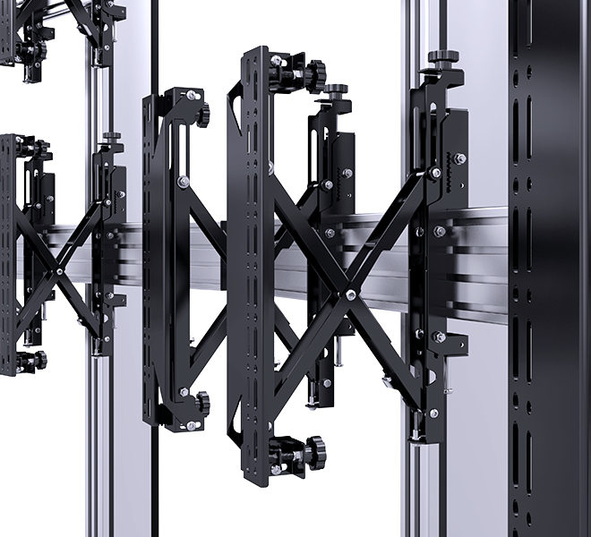 | BT8372 Universal Bolt-Down Videowall StandDesigned for screens up to 75" (190cm) / 50kg (110lbs) (per screen) | BT8373 Universal Curved Videowall StandDesigned to create curved videowalls |